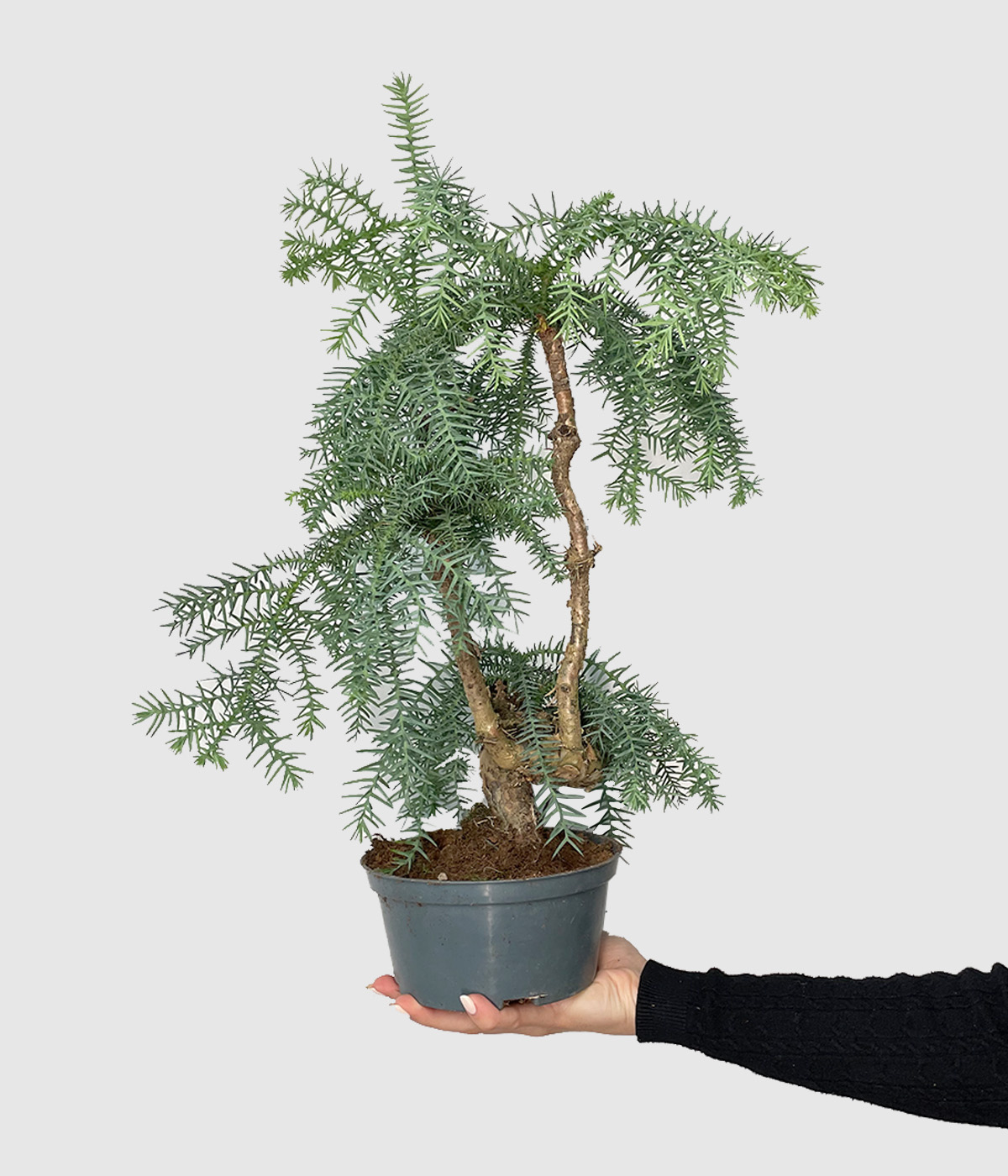Nič več pometanja iglic po stanovanju! Araucaria je zimzeleni iglavec, tale lepotecica pa je gojena v obliki bonsaja. Znana je počasnejši, grmičasti rasti; v naravi zraste v mogočno drevo, v bonsaj obliki pa bo z obrezovanjem ostala manjša in bolj kompaktna. Ne mara mrzle zime, zato jo raje hrani v notranjih prostorih, ko se temperatura spusti pod 0°C, poleti pa bo najhitreje zrastla, če jo postaviš ven v senčno lego. Potrebuje zmerno zalivanje, ko se zgornji sloj zemlje deloma osuši saj ne mara sušnih obobij in veliko svetlobe. Popolna izbira za vse ljubitelje in zbiratelje bonsajev
